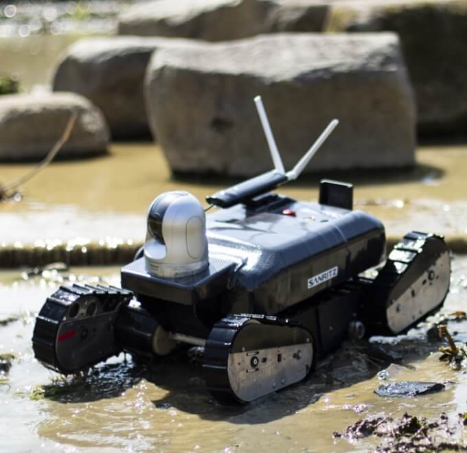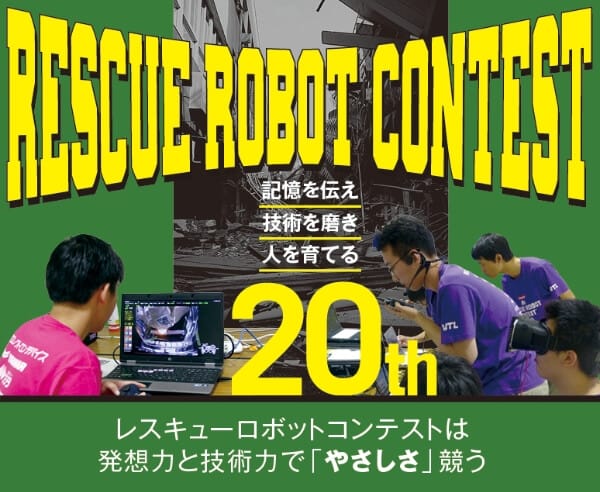 阪神淡路大震災を契機に始まった「レスキューロボットコンテスト」。技術とアイデアとで災害救助に立ち向かう学生たちに機材を提供し、技術を指導しています